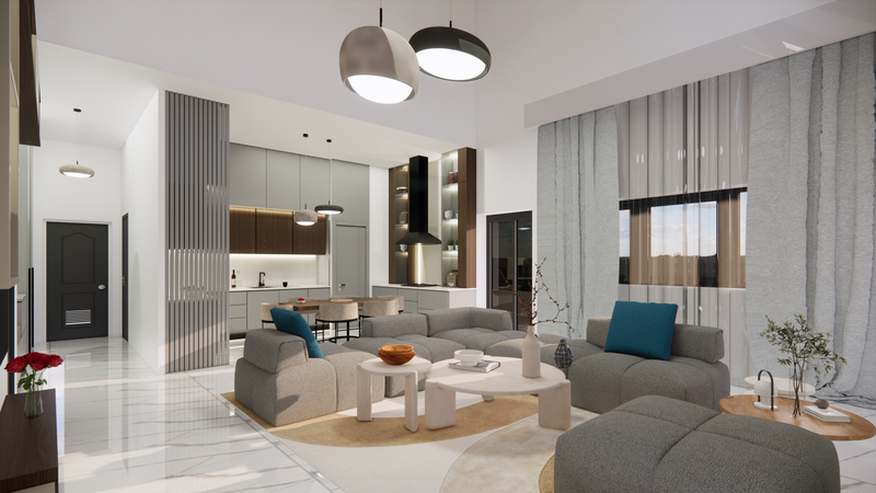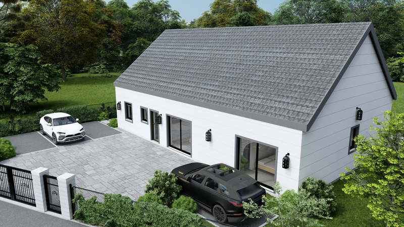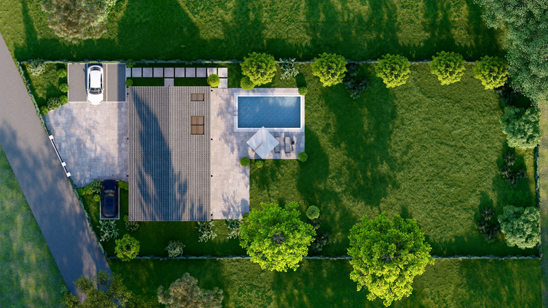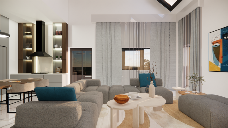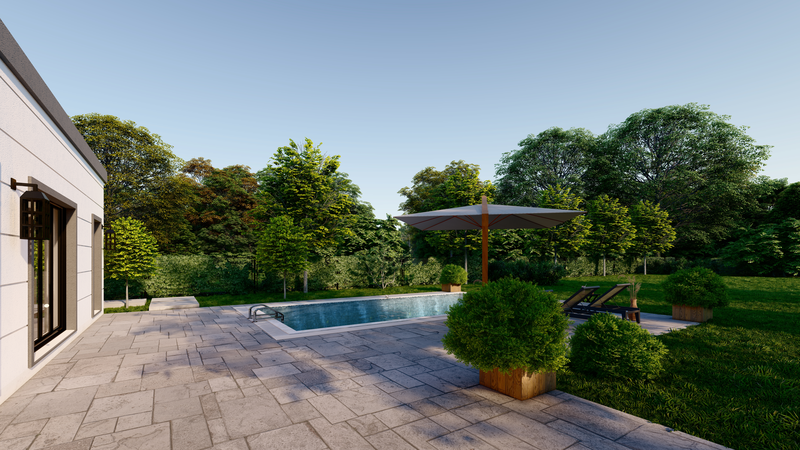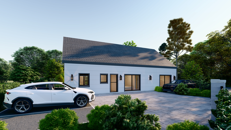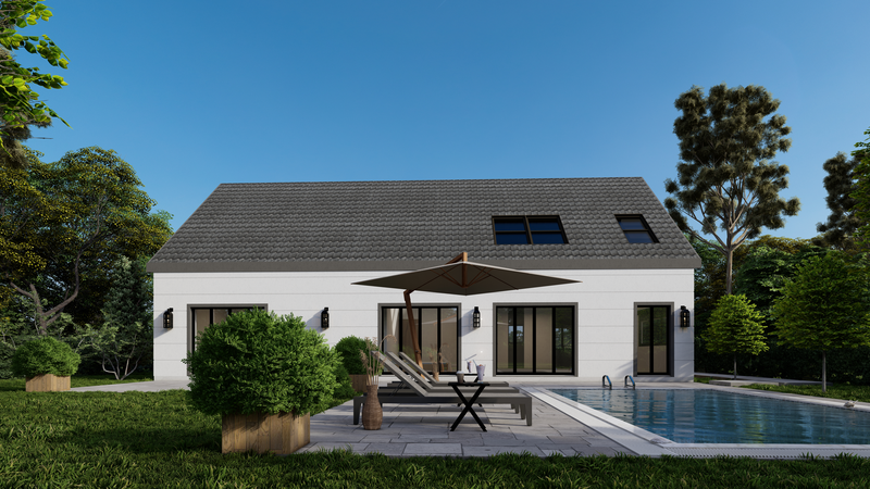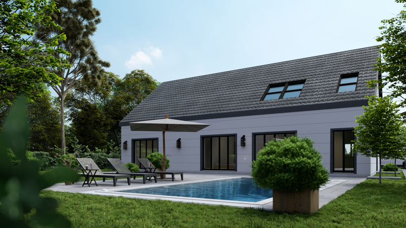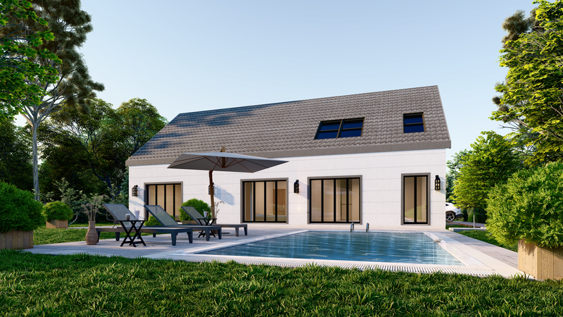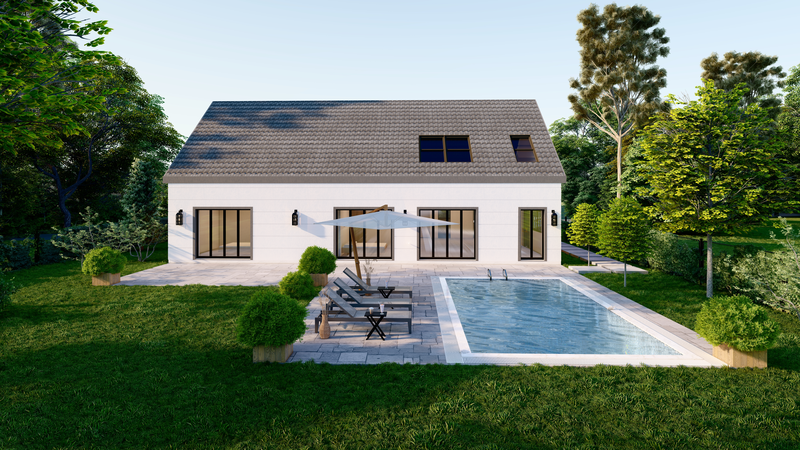 Deux villas individuelles de plain-pied, élégantes et discrètes, implantées sur un vaste terrain verdoyant avec piscine, conçues pour offrir un cadre de vie serein, fonctionnel et lumineux à leurs futurs habitants.