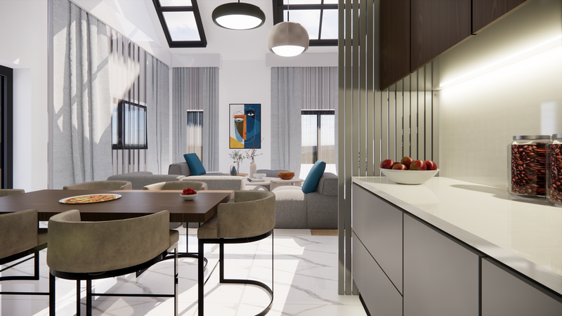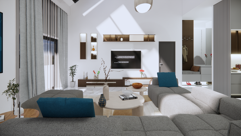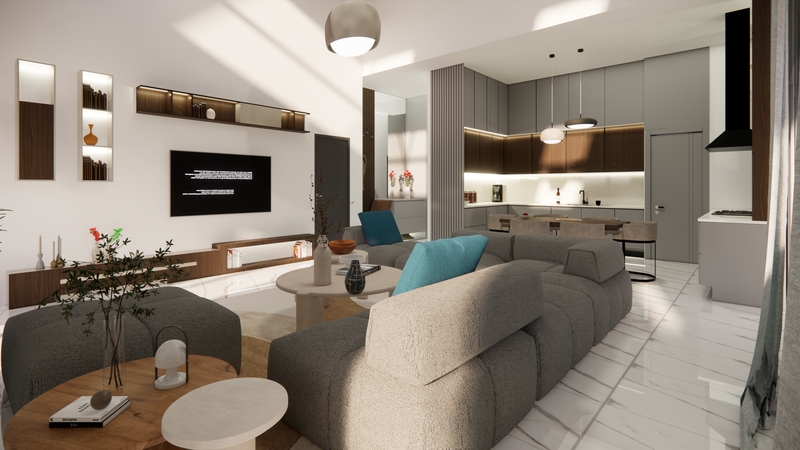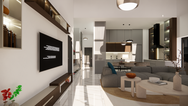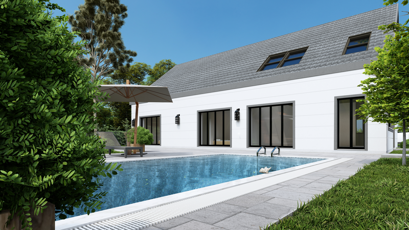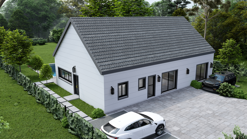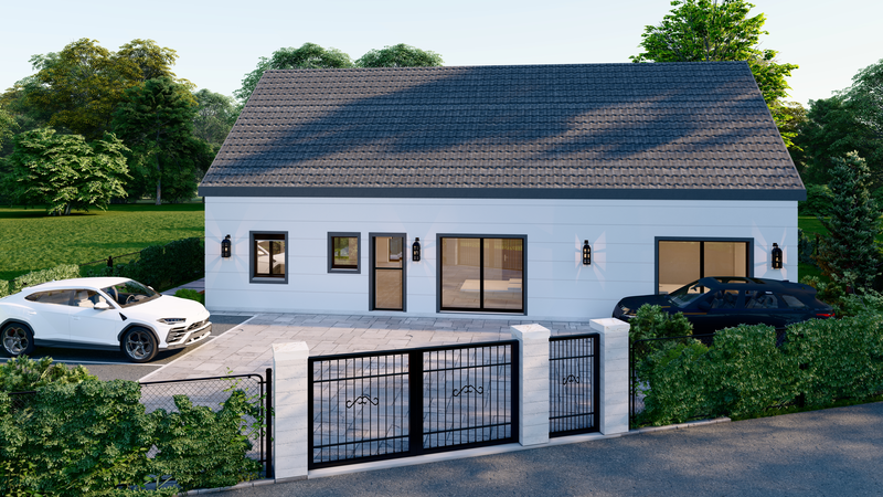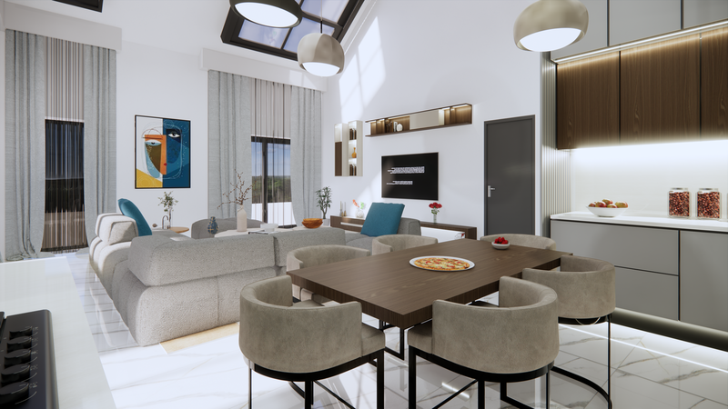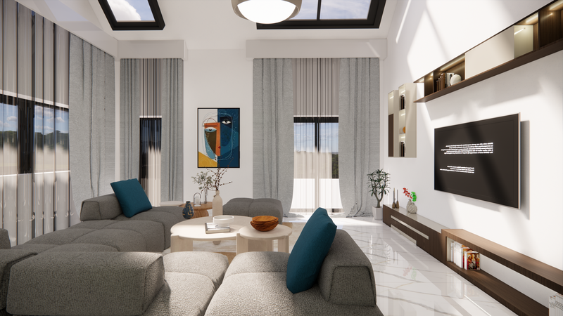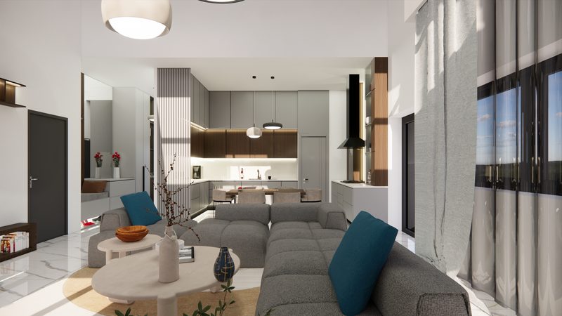 Deux villas individuelles de plain-pied, élégantes et discrètes, implantées sur un vaste terrain verdoyant avec piscine, conçues pour offrir un cadre de vie serein, fonctionnel et lumineux à leurs futurs habitants.