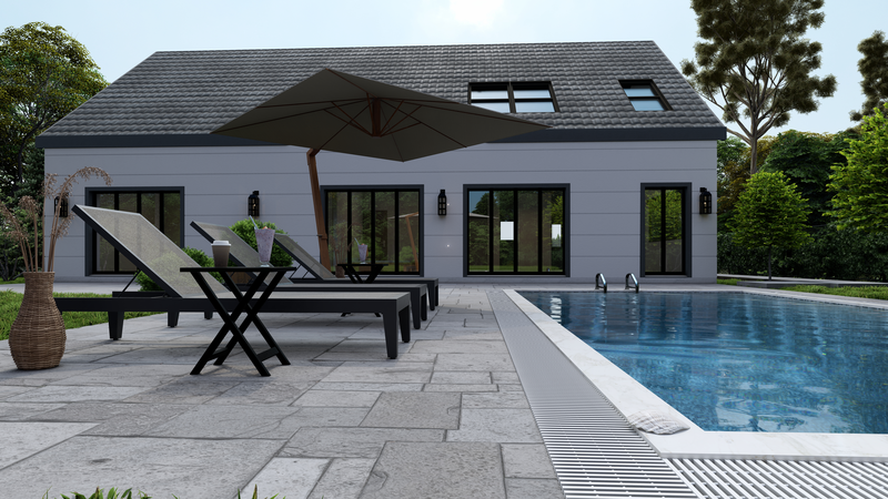 - Menuiseries aluminium gris anthracite (RAL 7016)